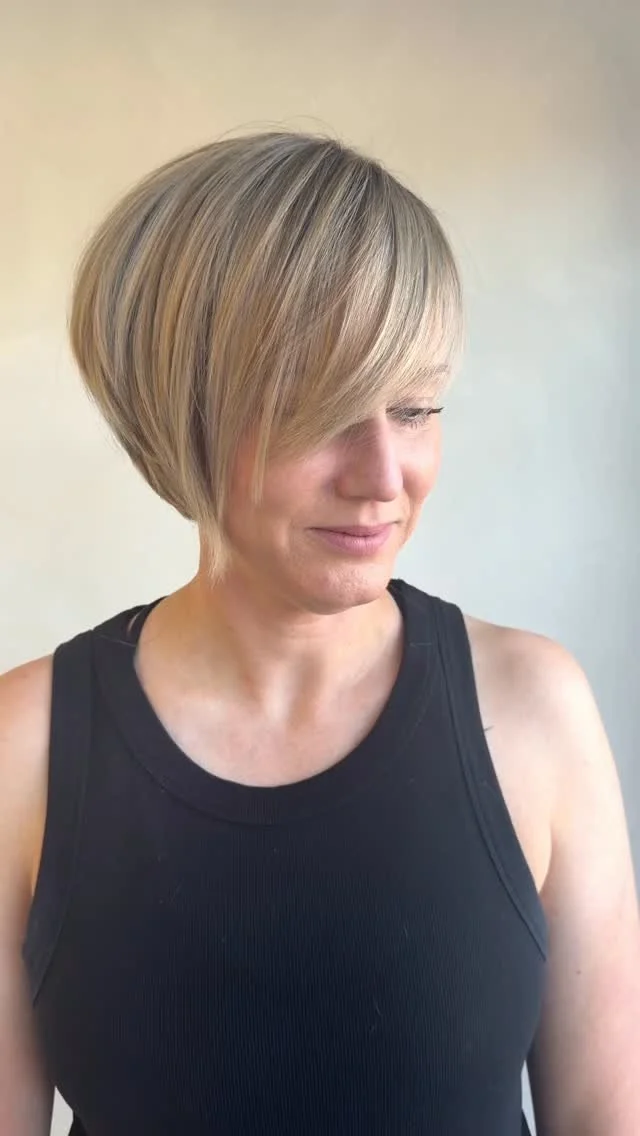 We took grown-out heavy bleach and transformed it into rich, multidimensional brunette with just enough lightness woven through to keep that brightness yo